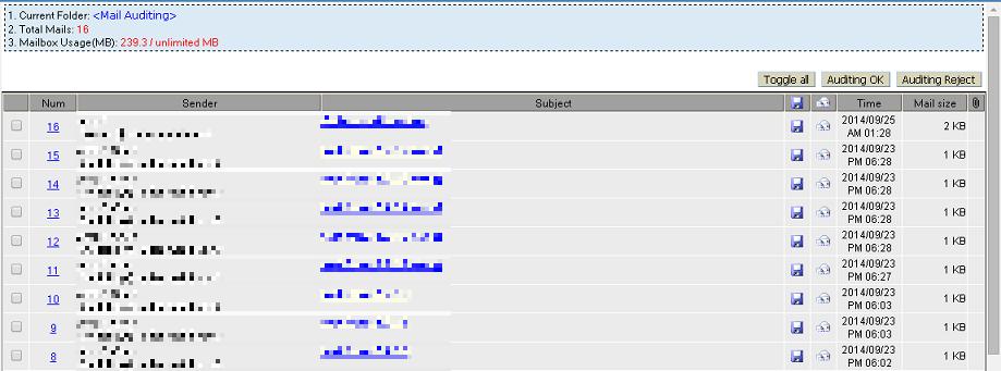7. When audit accout is configured, the mails are no longer be sent automatically as usual. Therefore, audit account needs to audit frequently to maintain mail sending efficiently. System also provide auto auditing mechanism to help mails sending out on time. you could find specific configuration in Webmail config.