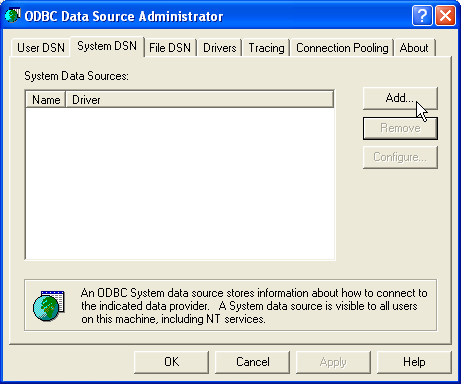 1. First, we need to create a DSN for our database source. Please go to [Control Panel]->[Administrative Tools]->[Data sources (ODBC)].
