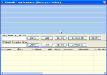 7. Select all data in above list then click [Convert to DB], then you will find the data will be copied to the below list. You can close this tool if the step is done. The raidenmaild.mdb now contains your user list which is copied from users.cfg.