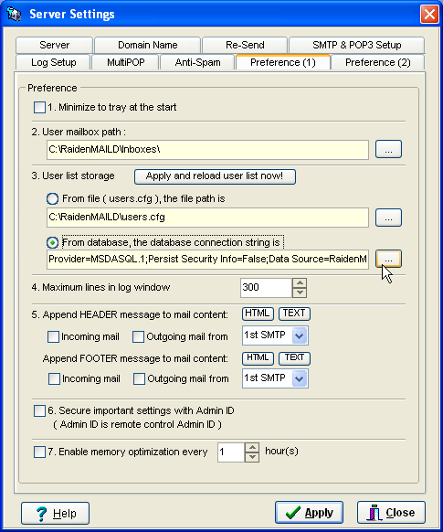 Note: If you want to use other kinds of database such as MySQL, MSSQL...etc, please refer the <RaidenMAILD>\Table_Scripts\*.script to build your table first, then create DSN.