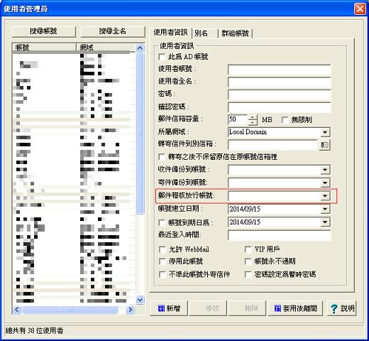 7. 要知道由於設定稽核後, A 帳號的外寄信件將無法直接寄出, 故 B 帳號就有責任定時的稽核信件並放行, 但人總有無法處理的時候,